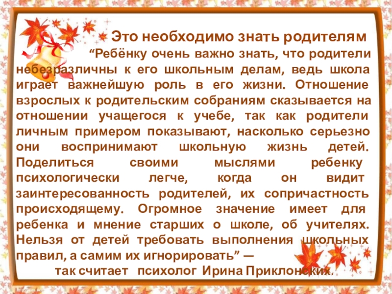 Родители, которые общаются между собой и знакомы с одноклассниками ребенка, всегда достигнут больших успехов в воспитании своих детей, будут лучше ориентироваться в школьных проблемах.