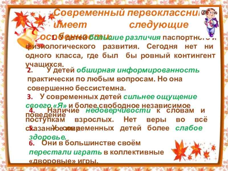 3. У современных детей сильнее ощущение своего «Я» и более свободное независимое поведение