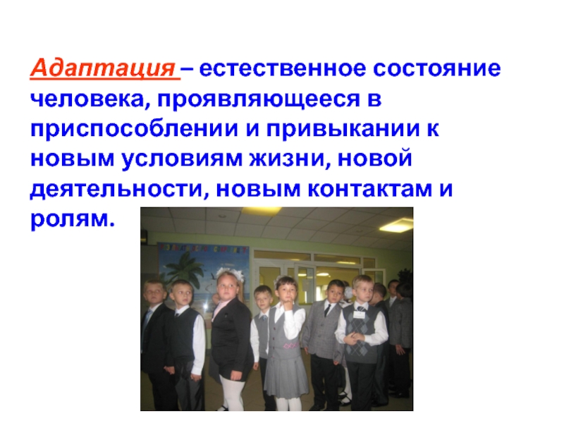 Адаптация – естественное состояние человека, проявляющееся в приспособлении и привыкании к