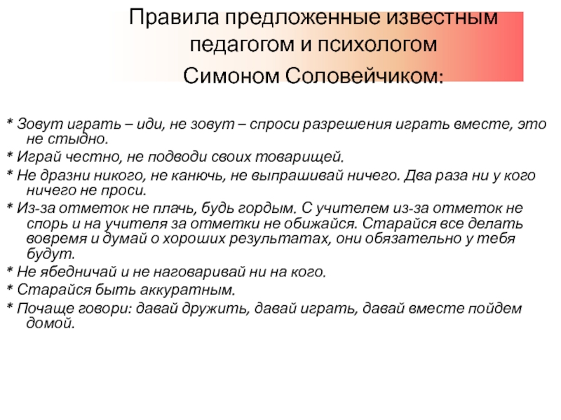 Слайд 14Правила предложенные известным педагогом и психологом