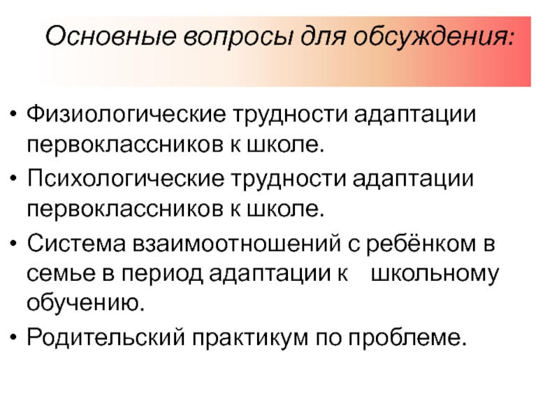по адаптации ребёнка к школе.