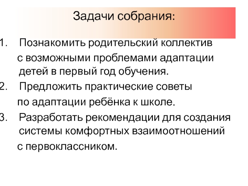 Слайд 9Задачи собрания: