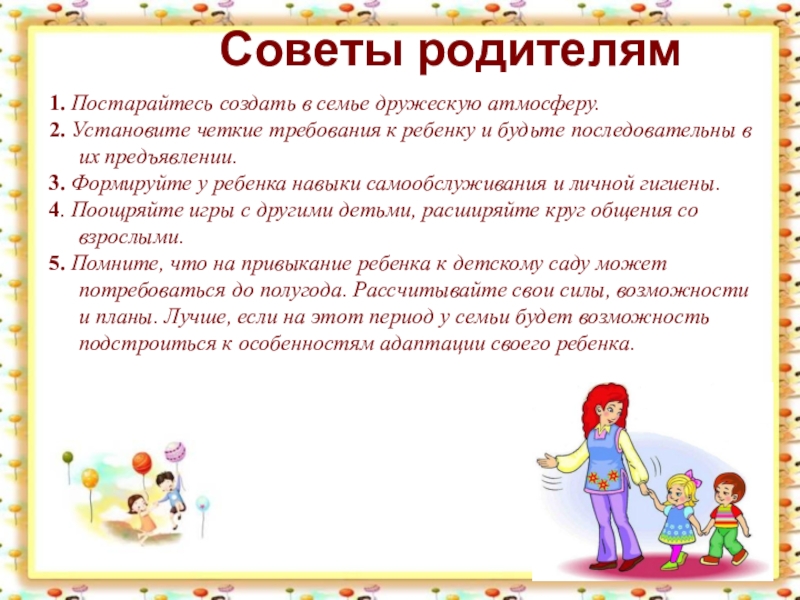 5. Помните, что на привыкание ребенка к детскому саду может потребоваться до полугода. Рассчитывайте свои силы, возможности и планы. Лучше, если на этот период у семьи будет возможность подстроиться к особенностям адаптации своего ребенка.
