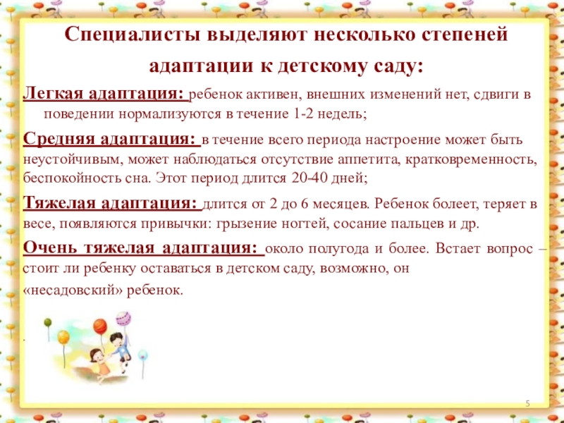 Очень тяжелая адаптация: около полугода и более. Встает вопрос – стоит ли ребенку оставаться в детском саду, возможно, он