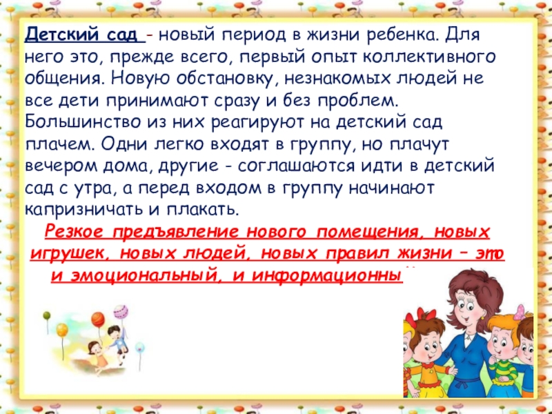 Слайд 2Детский сад - новый период в жизни ребенка. Для него это,