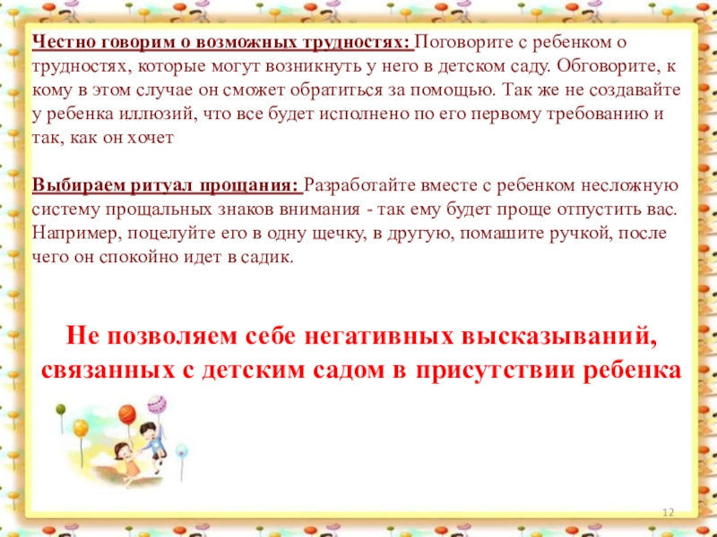 Не позволяем себе негативных высказываний, связанных с детским садом в присутствии ребенка