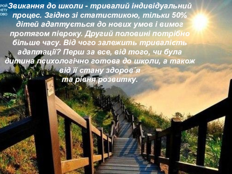 Звикання до школи - тривалий індивідуальний процес. Згідно зі статистикою, тільки