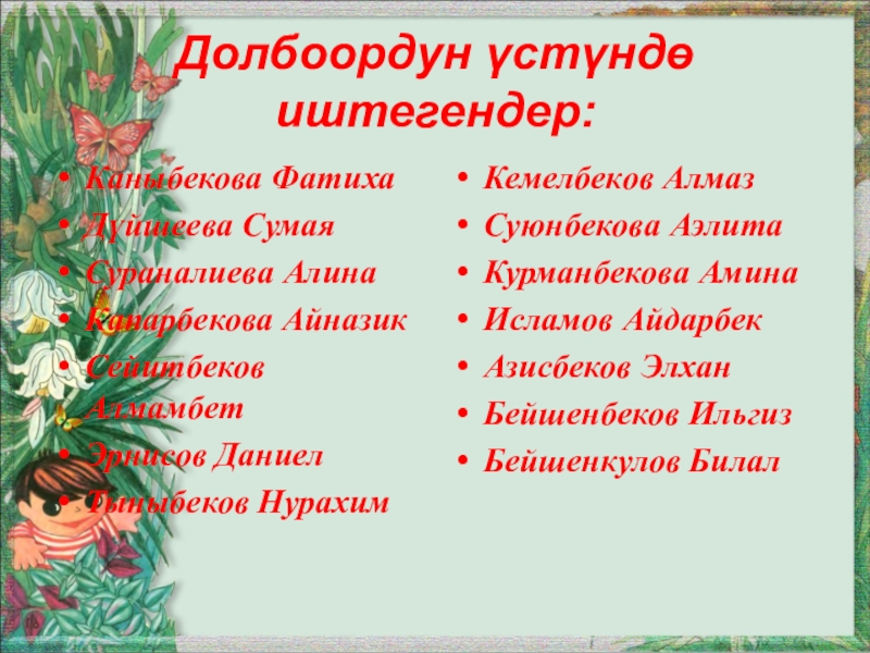 Слайд 43Долбоордун үстүндө иштегендер: