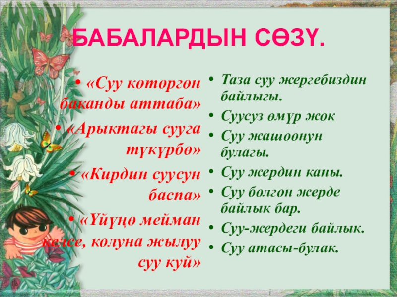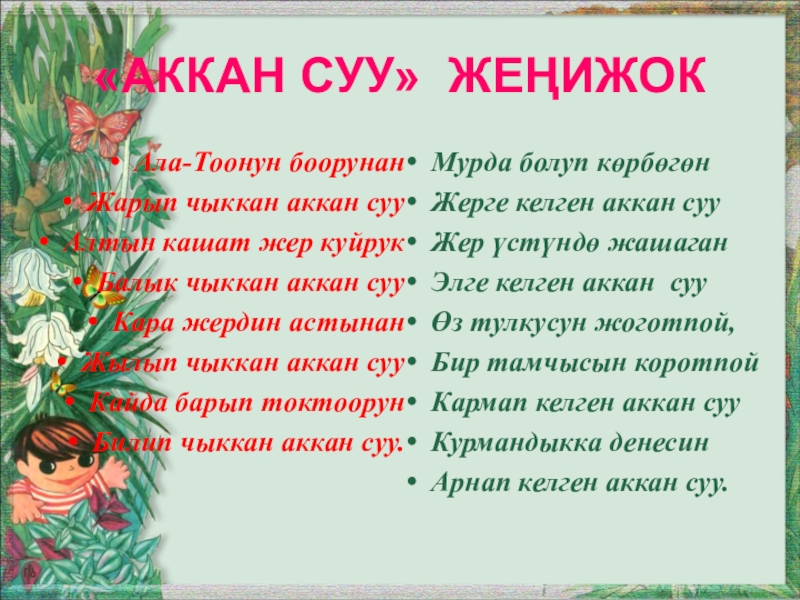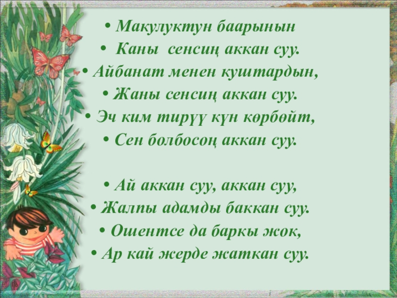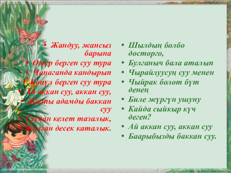 Слайд 5Суу тууралуу ырлар