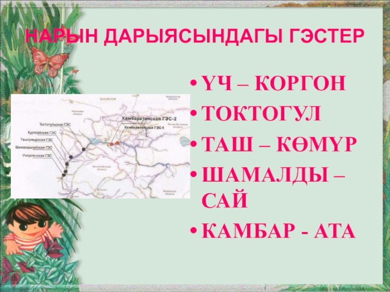 Слайд 35Нарын дарыясындагы ГЭСтер