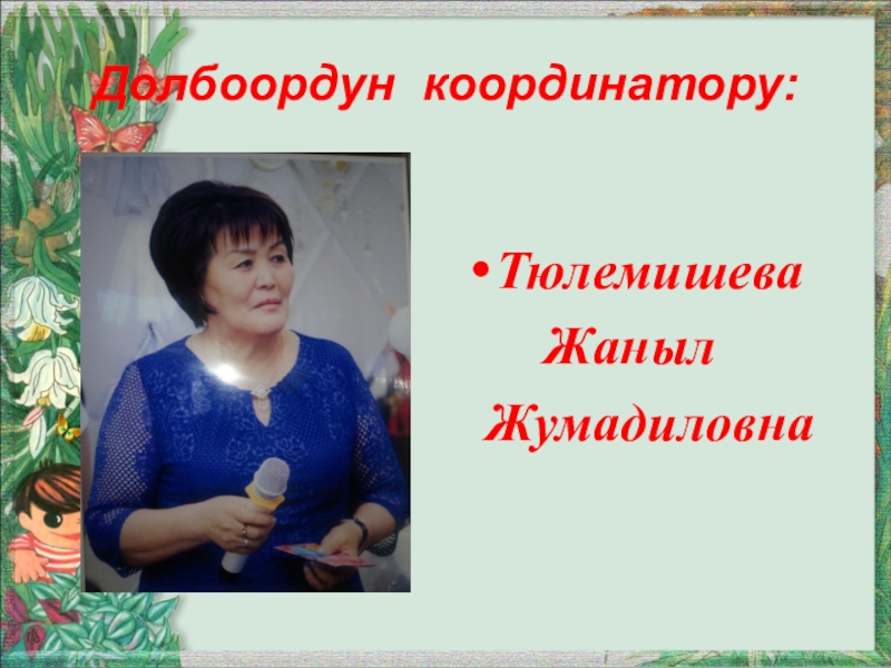 Слайд 42Долбоордун координатору: