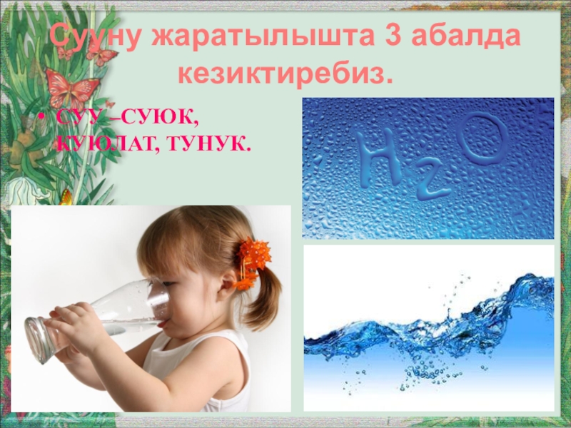 Слайд 9Сууну жаратылышта 3 абалда кезиктиребиз.