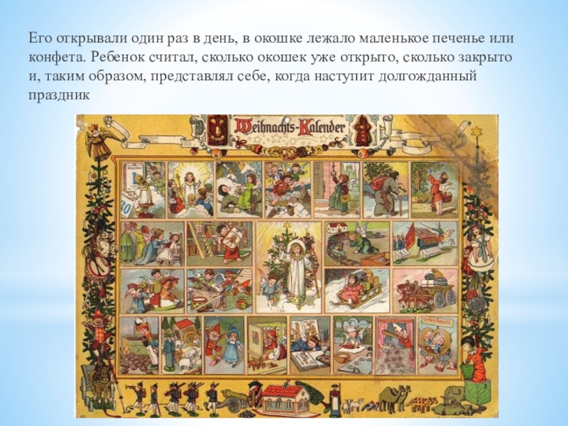 Адвент-календарь (или календарь ожидания праздника) был изобретён в Германии в 1903