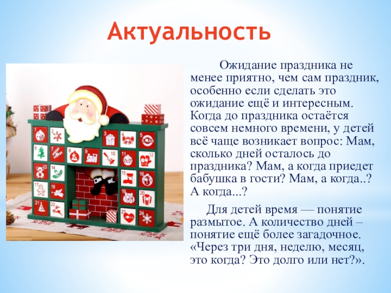 или конфета. Ребенок считал, сколько окошек уже открыто, сколько закрыто и, таким образом, представлял себе, когда наступит долгожданный праздник