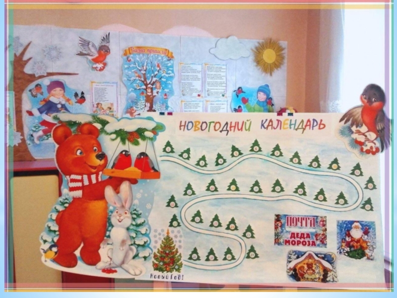 Определённое место календаря (на виду и напоминать, что праздник приближается). Ребенок может свободно подойти к нему, рассмотреть и посчитать дни.