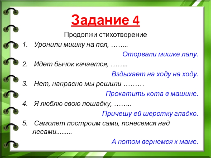 Продолжи стихотворение