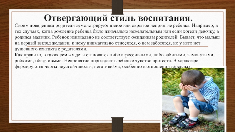 Своим поведением родители демонстрируют явное или скрытое неприятие ребенка.