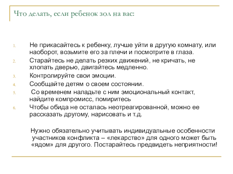 Слайд 13Что делать, если ребенок зол на вас: