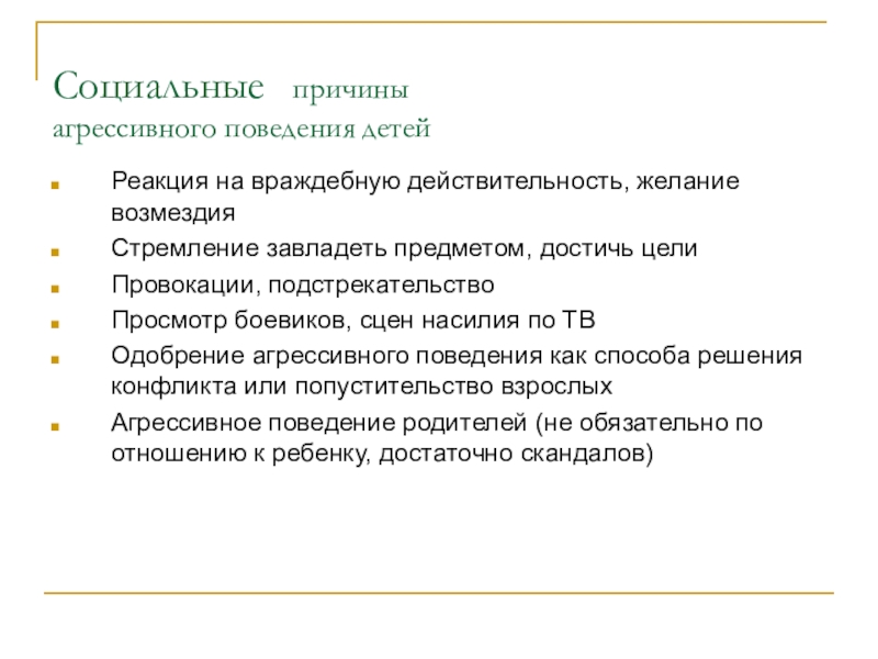 Слайд 10Внешние причины детской агрессии
