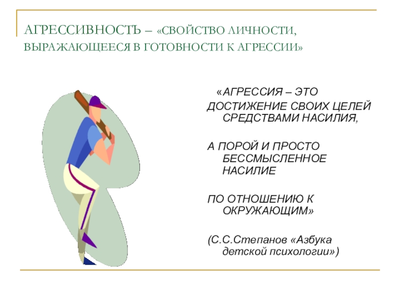 Слайд 5АГРЕССИВНОСТЬ – «СВОЙСТВО ЛИЧНОСТИ, ВЫРАЖАЮЩЕЕСЯ В ГОТОВНОСТИ К АГРЕССИИ»