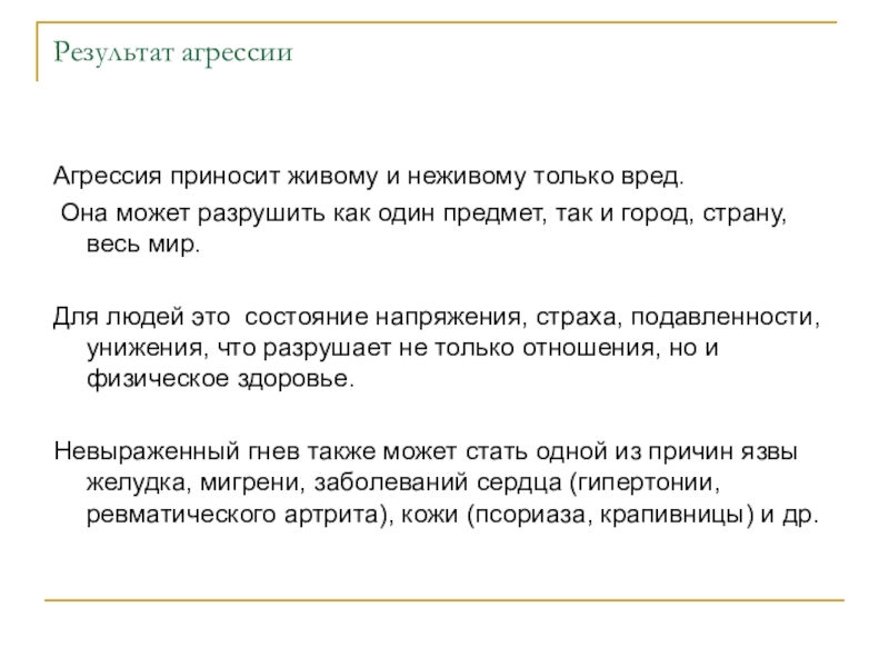 Слайд 11Результат агрессии