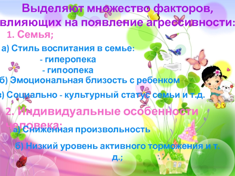 б) Низкий уровень активного торможения и т.д.;