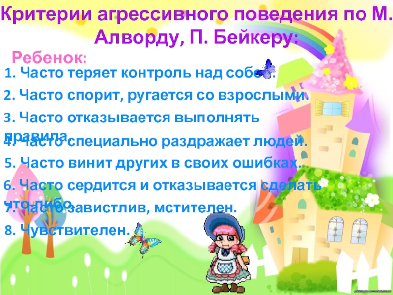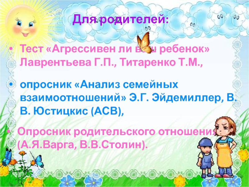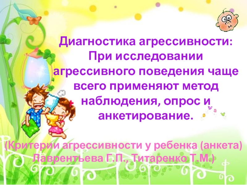 (Критерии агрессивности у ребенка (анкета) Лаврентьева Г.П., Титаренко Т.М.)
