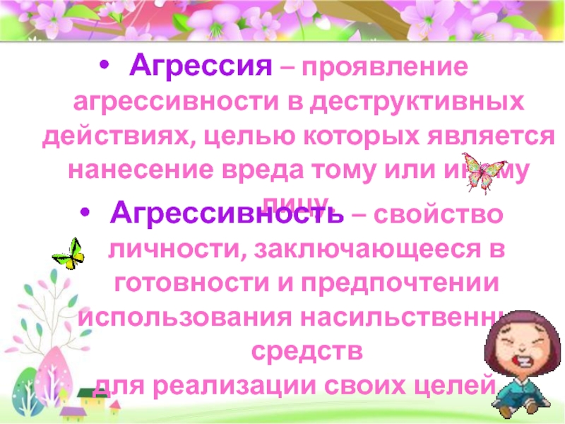 Агрессивность – свойство личности, заключающееся в готовности и предпочтении использования насильственных средств
