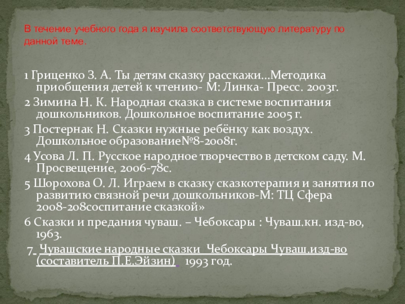 В течение учебного года я изучила соответствующую литературу по данной теме.