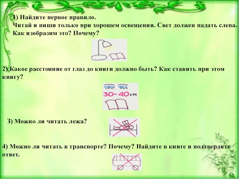 4) Можно ли читать в транспорте? Почему? Найдите в книге и подтвердите ответ.