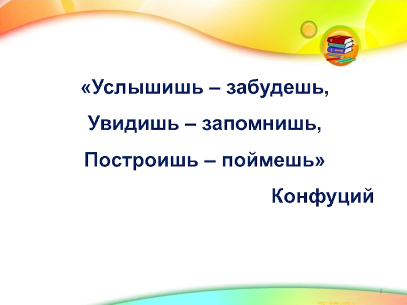 Слайд 2«Услышишь – забудешь, Увидишь – запомнишь, Построишь – поймешь»