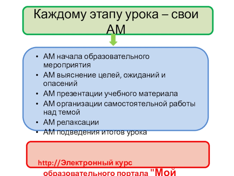 Слайд 16Каждому этапу урока – свои АМ