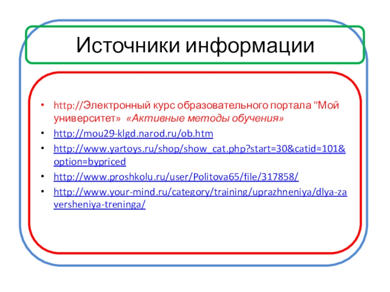 http://Электронный курс образовательного портала "Мой университет» «Активные методы обучения»