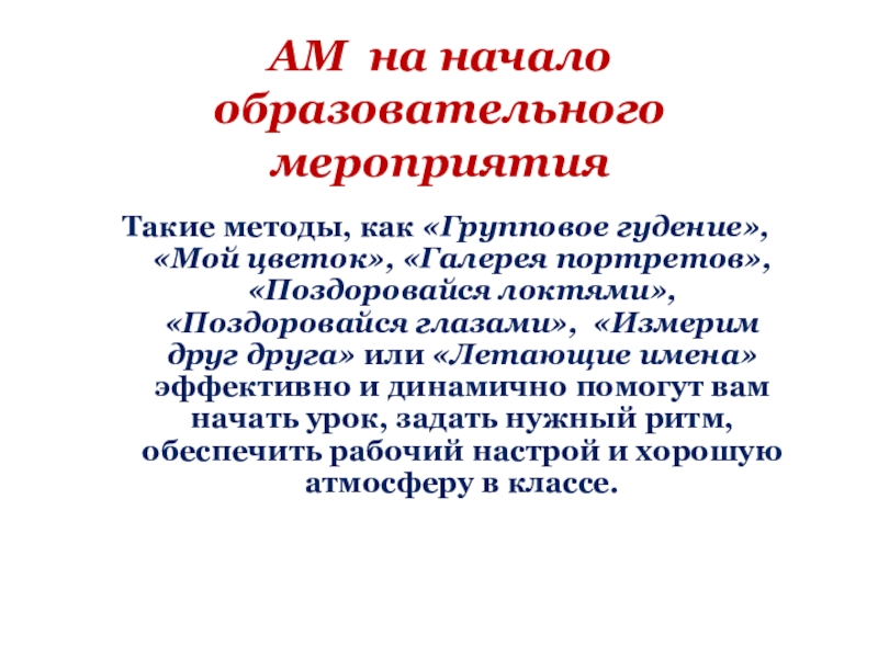 Слайд 17АМ на начало образовательного мероприятия