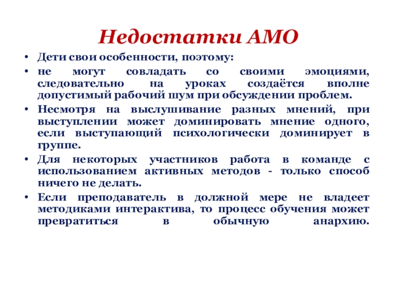 Слайд 23Недостатки АМО