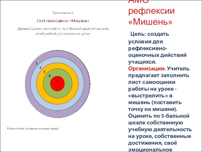 Слайд 21АМО рефлексии «Мишень»