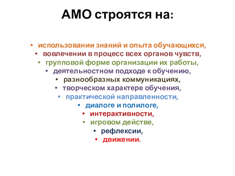 Слайд 10АМО строятся на: