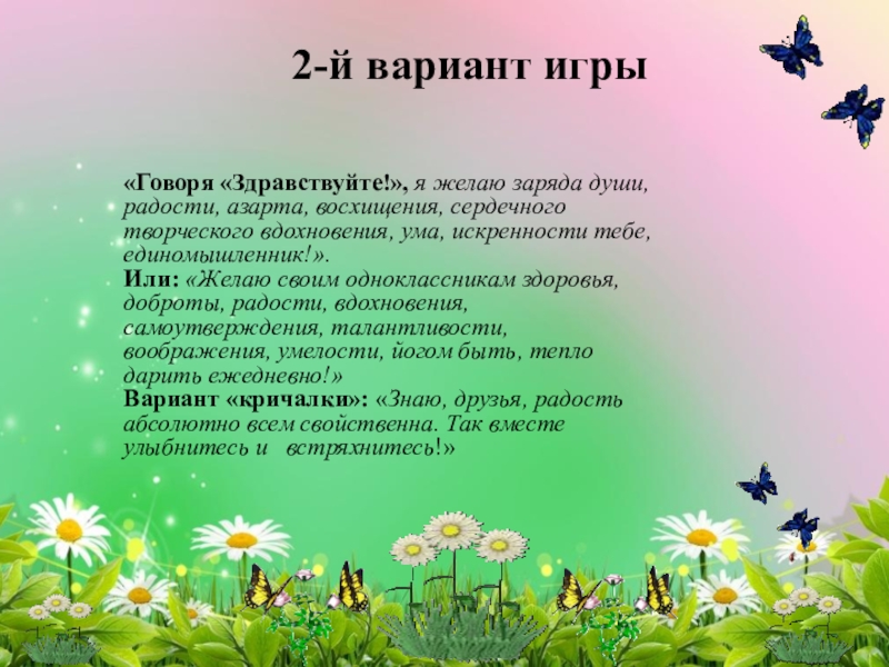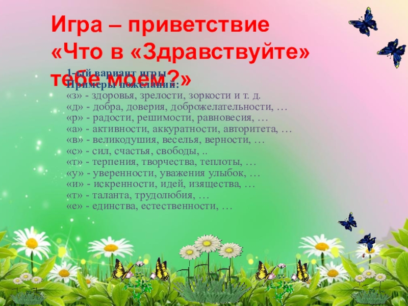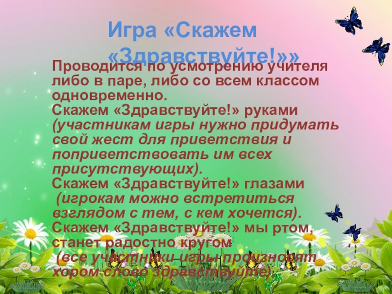 «Поздоровайся глазами», «Фруктовый сад»,
