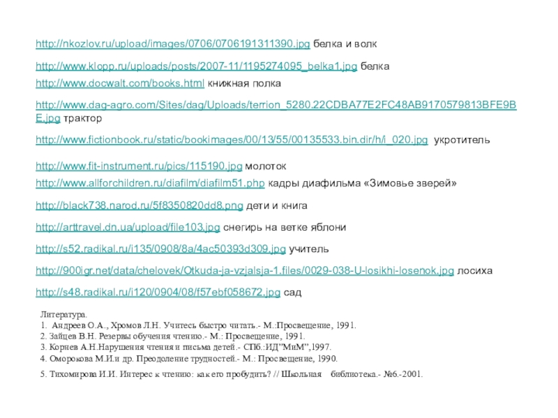 1. Андреев О.А., Хромов Л.Н. Учитесь быстро читать.- М.:Просвещение, 1991.