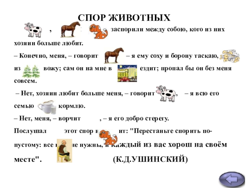 http://nsc.1september.ru/view_article.php?ID=200404202 К.Д.Ушинский «Спор животных»
