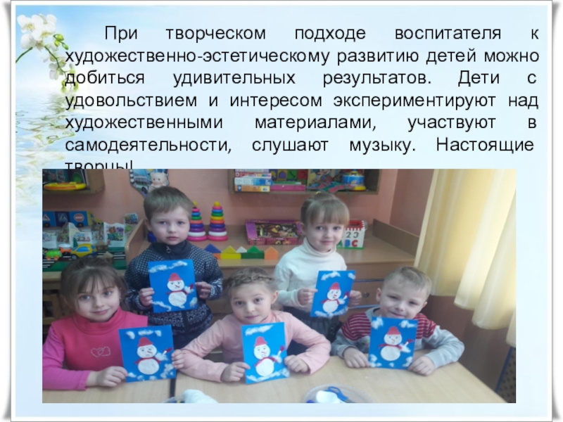 Слайд 13 При творческом подходе воспитателя к художественно-эстетическому развитию детей можно добиться удивительных