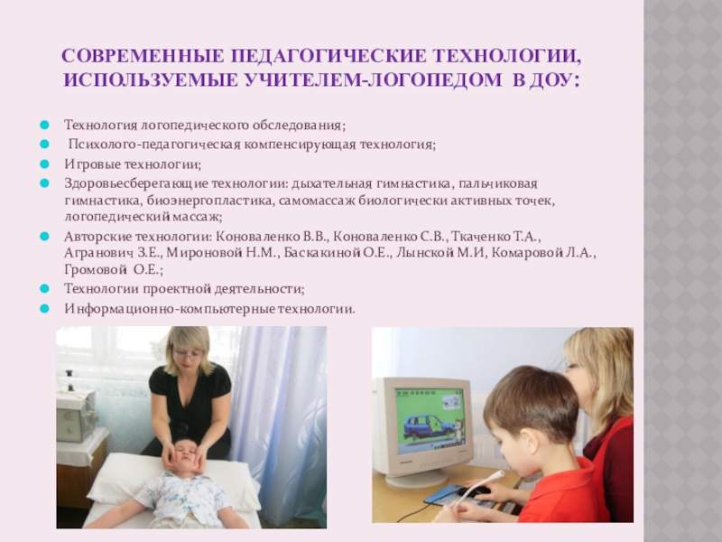 Современные педагогические технологии, используемые учителем-логопедом в ДОУ: