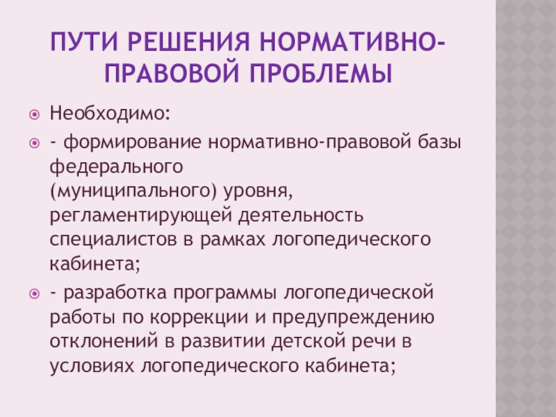 (муниципального) уровня, регламентирующей деятельность специалистов в рамках логопедического кабинета;