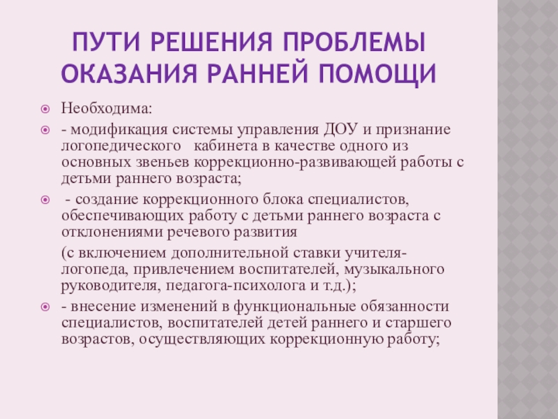 Слайд 12Пути решения проблемы оказания ранней помощи