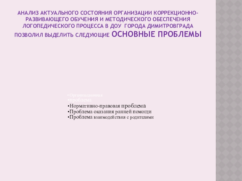 Анализ актуального состояния организации коррекционно-развивающего обучения и методического обеспечения логопедического процесса