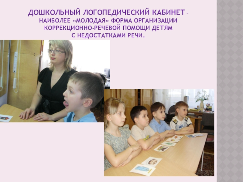 Слайд 3Дошкольный логопедический кабинет – наиболее «молодая» форма организации коррекционно-речевой помощи детям