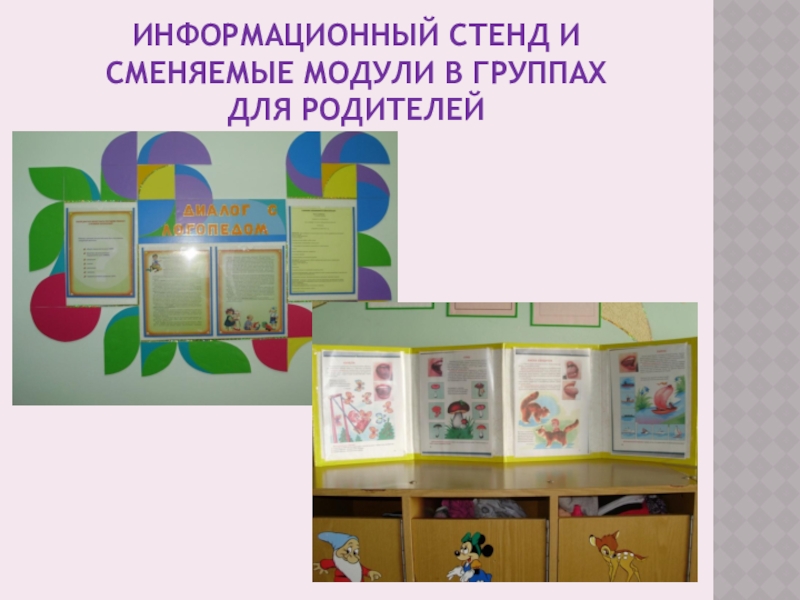 Слайд 17Информационный стенд и сменяемые модули в группах