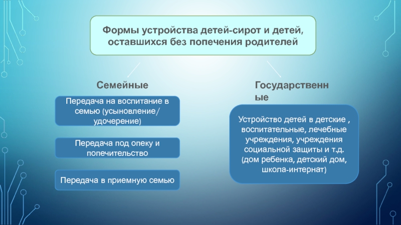 Устройство детей в детские , воспитательные, лечебные учреждения, учреждения социальной защиты и т.д.