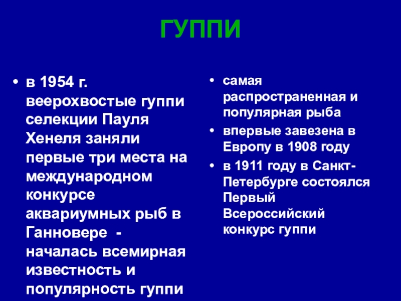 в 1911 году в Санкт-Петербурге состоялся Первый Всероссийский конкурс гуппи