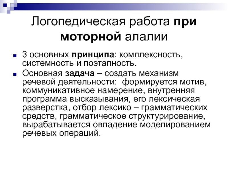 Слайд 16Логопедическая работа при моторной алалии